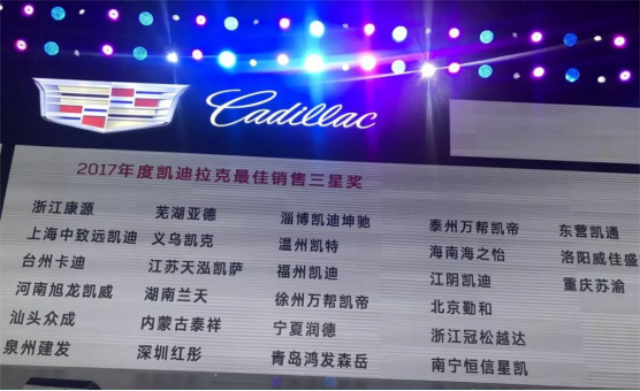 2017年度凱迪拉克最佳銷售三星獎